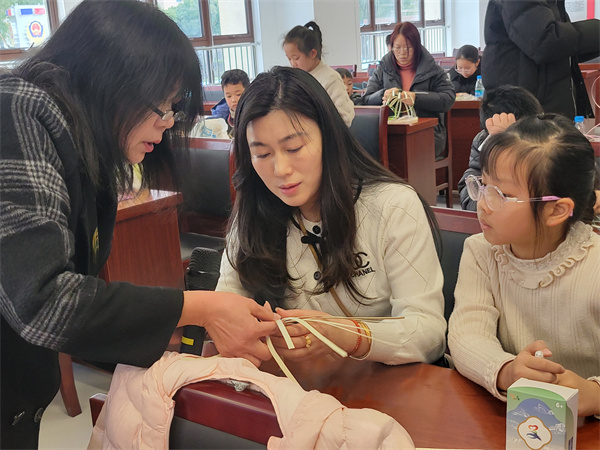 区馆特邀苏州幼儿师范高等专科学校的金红莲老师现场指导“藤编香囊”手工制作。金老师向大家讲解了非遗藤编工艺的历史、制作流程及注意事项。经过金老师耐心的讲解和指导,小朋友们在家长的陪伴下,用“挑二压二”的技法进行编织,手指穿梭在经纬之间,经过整理藤丝、搭骨架、螺旋缠绕编织、收口、挂提手等步序,一个个精美的藤编香囊顺利完成。最后,大家高举自己亲手制作的藤编香囊合影留念,喜笑颜开。